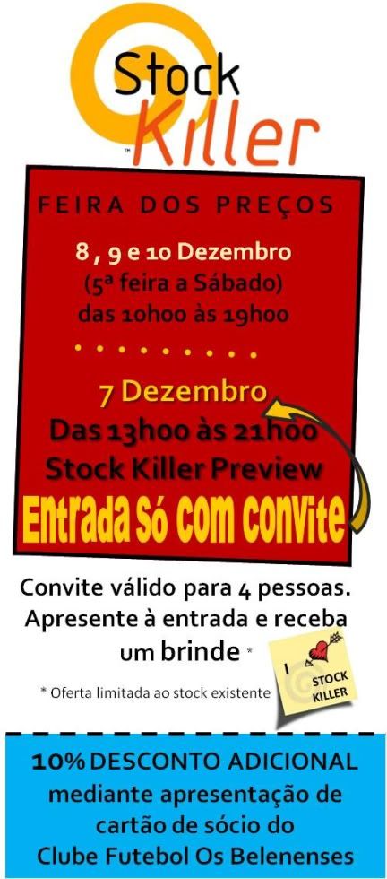 Todos os que já experimentaram, sabem que as compras de Natal na Stock Killer são sempre um êxito. Na 4ª feira, a entrada é só por convite. Imprime o teu (ver abaixo) e aparece!